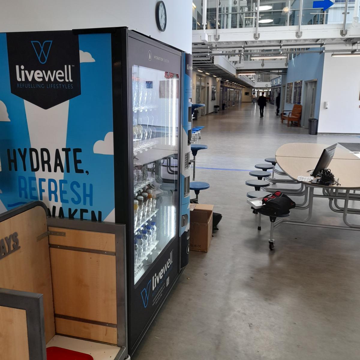 Livewell Vending delivered two modern cashless healthy drinks vending machines, branded as “Hydration Stations”, specifically designed for secondary school environments.